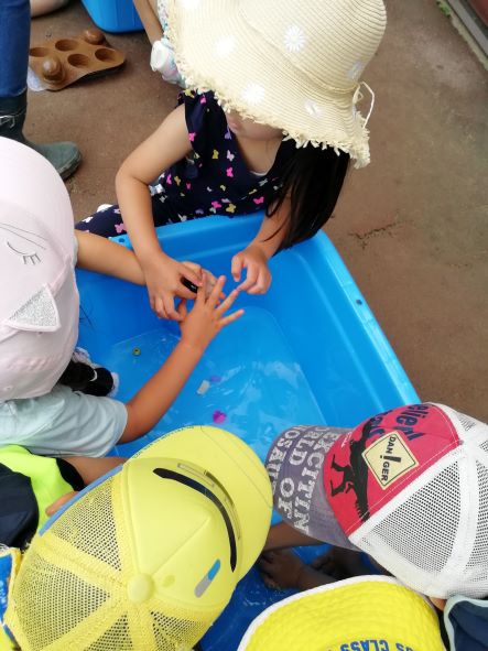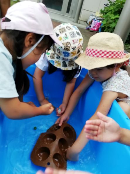 湿度の高い日でしたので、氷を使って遊びました。