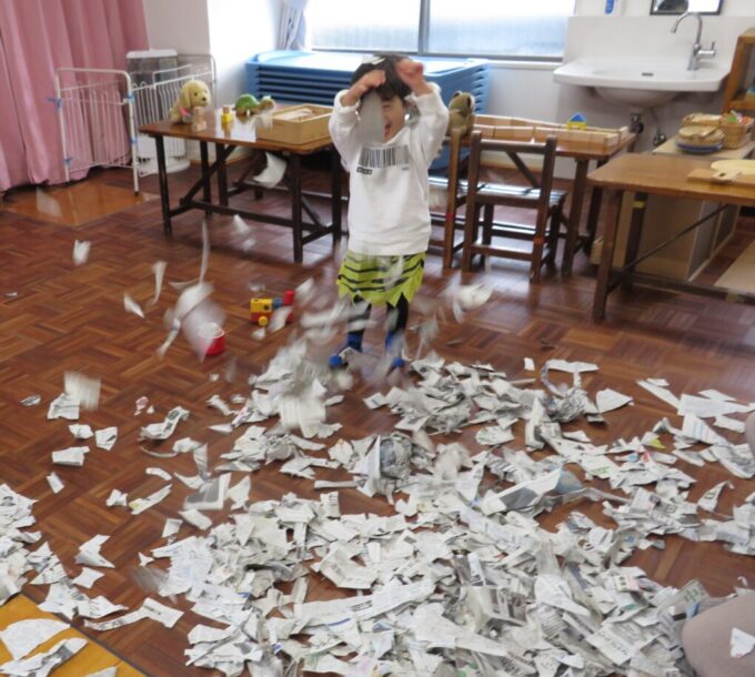 新聞紙をひたすらひたすらビリビリビリビリと破って・・・・