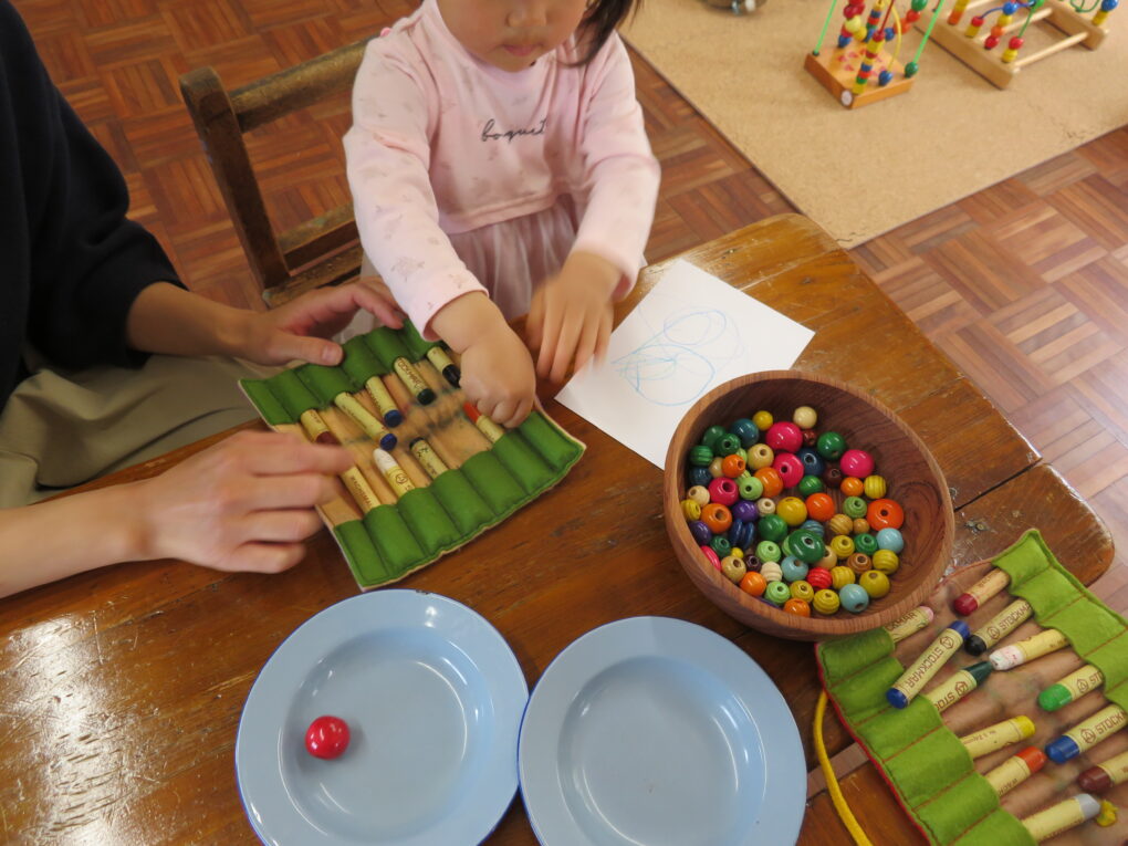 お友だちがママのためにビーズを選んで、