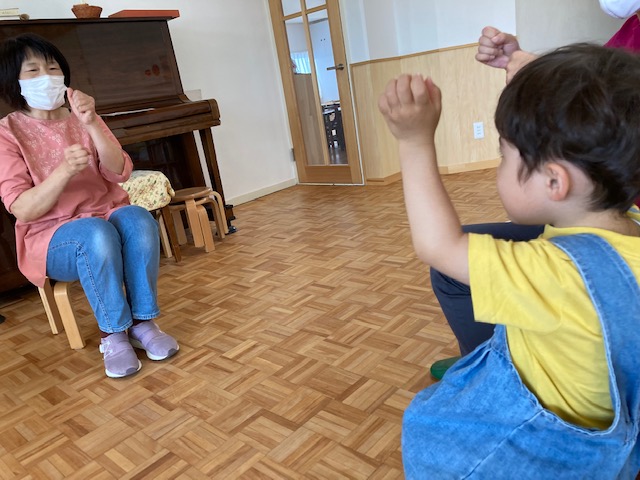 今日のおあつまり 手遊び歌「ひげじいさん」をしました。