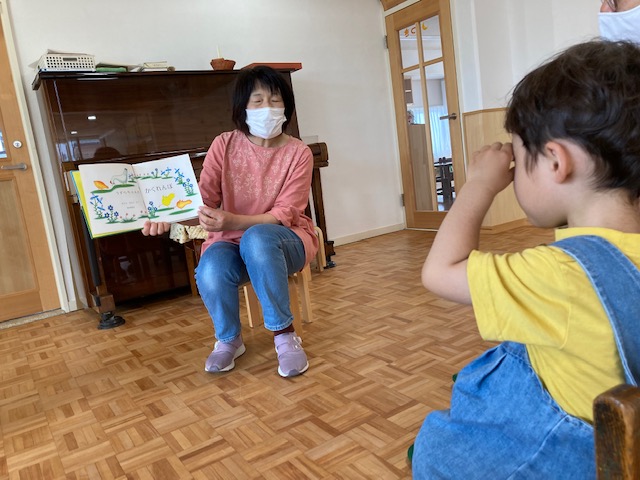 かくれんぼしたうずらちゃんを絵本に近寄って探していましたね。