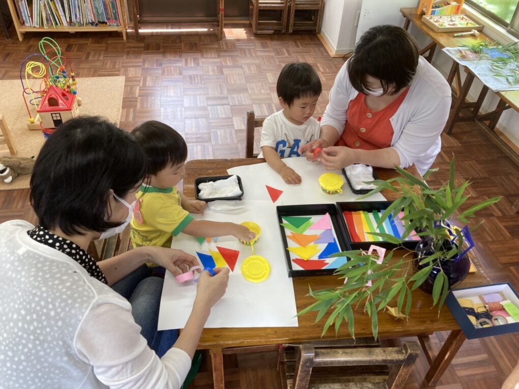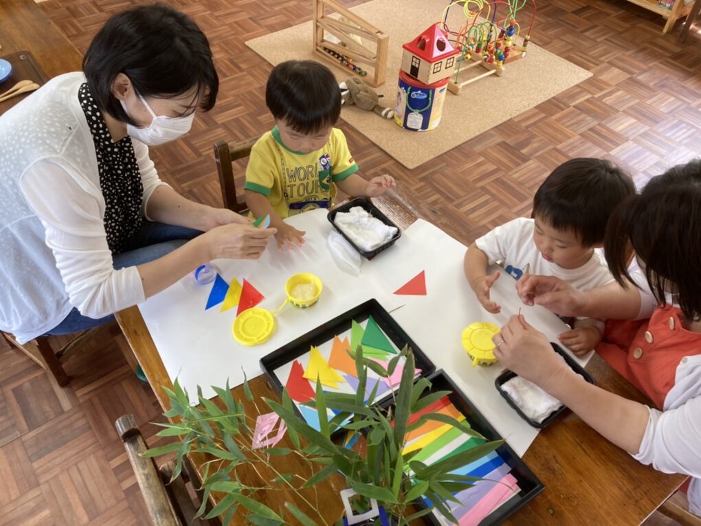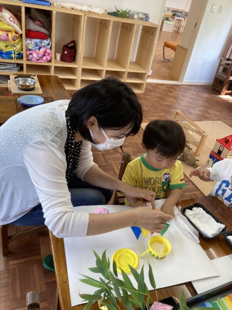 七夕かざりつくりにお誘いし、おかあさんといっしょに