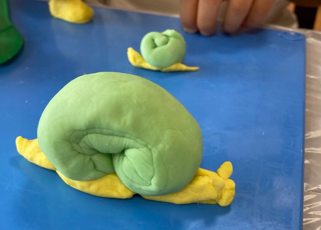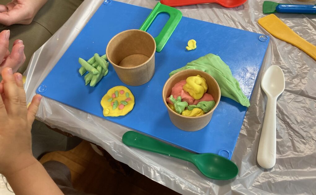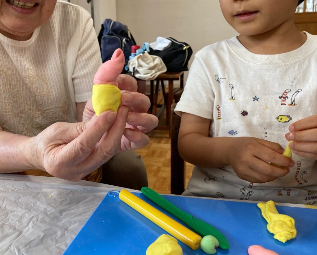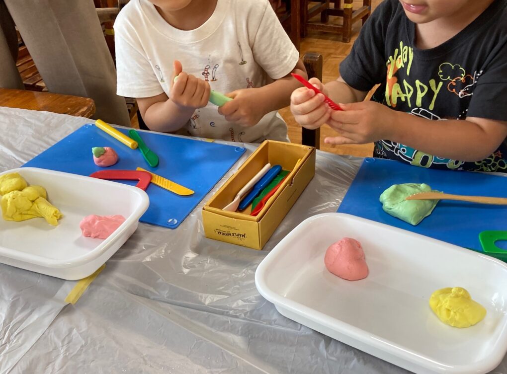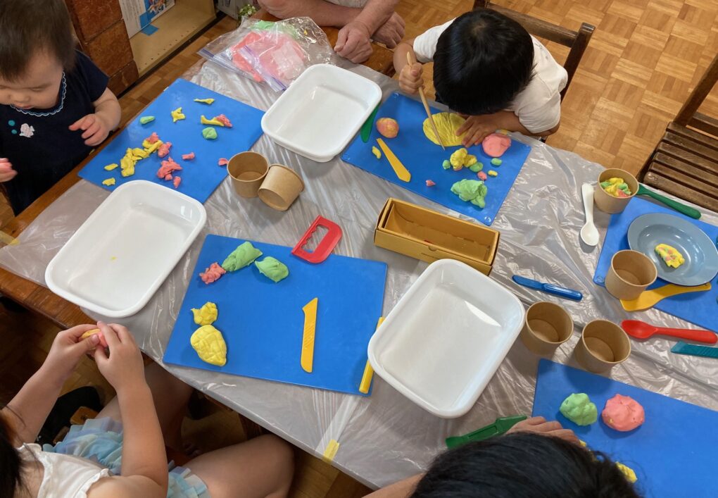 丸めたり伸ばしたりねじったり、ひたすらちぎったりとそれぞれ夢中になってねんどで遊んでいました。