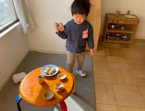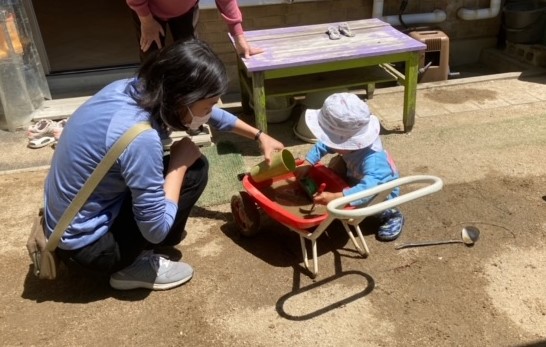 今日もいいお天気!! お庭に出て遊んだよ。押し車、ちょっと重たくて大変なんだけど、 今日、上手に動かす事ができたんだ!! お水を入れてジュースも作ったんだ。 ホールでは・・・ おもちゃが入っていたかご、 なんだか、ぼくの太鼓にちょうどいい!!... -