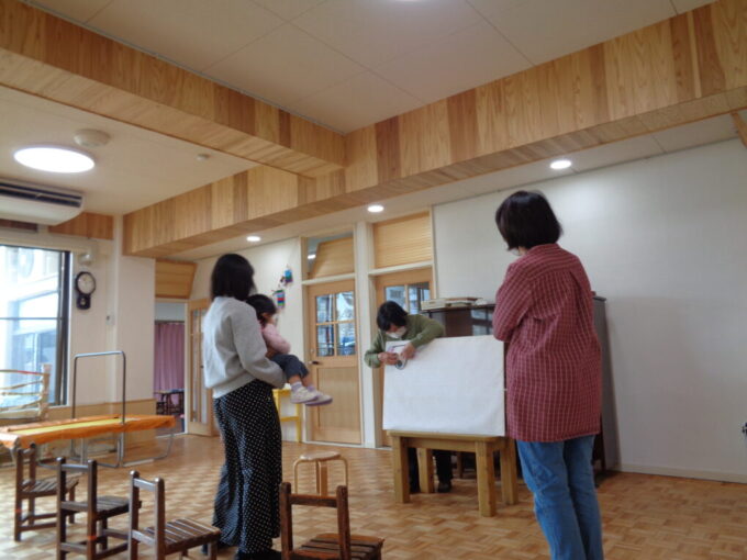 今年度の最後のももグループでした。 いつもは絵本を読みますが、今日は、大きな白いパネルが置いてありました。 なにが始まるのかな。 いろんなどうぶつさんのお顔! 笑っていたり、困っていたり。 「このおめめがいい!」とお友だちが直してくれました。... -