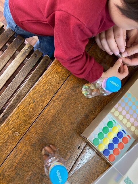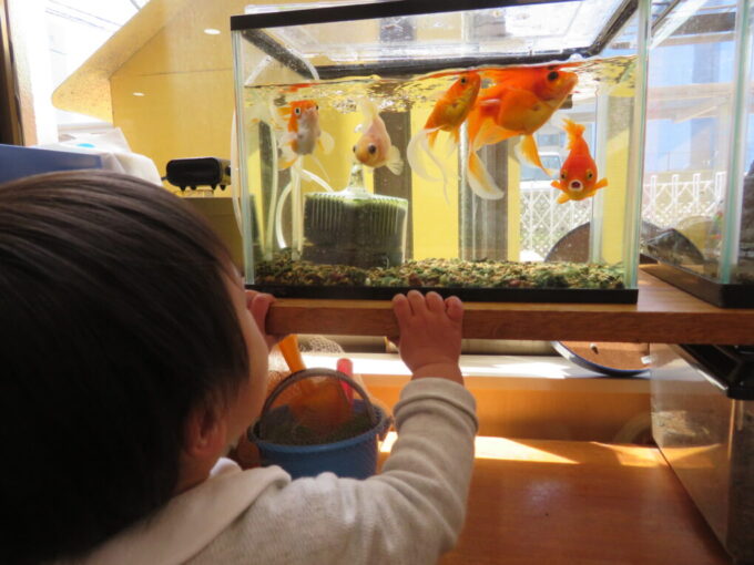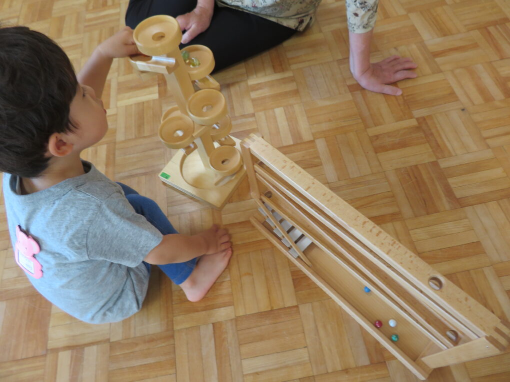 まずは 金魚さん、かめさんにごあいさつ。 ”おはようございます” ”ごはんをどうぞ” いつもお世話をありがとうね。 木のおもちゃを組み合わせて、ビー玉転がしで楽しんでもらえたら…と思って、 ホールに出してみました! そうしたら、階段状に積んでビー... -